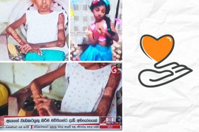 It was revealed in the news broadcast of Derana Media Network, that a 11-year-old school girl, a resident of Suriyawewa village in Hambantota, was caught in a fire unexpectedly and more than 75% of her body was burnt, and requested to help her to get medical treatments. A donation of Rs.10,000...